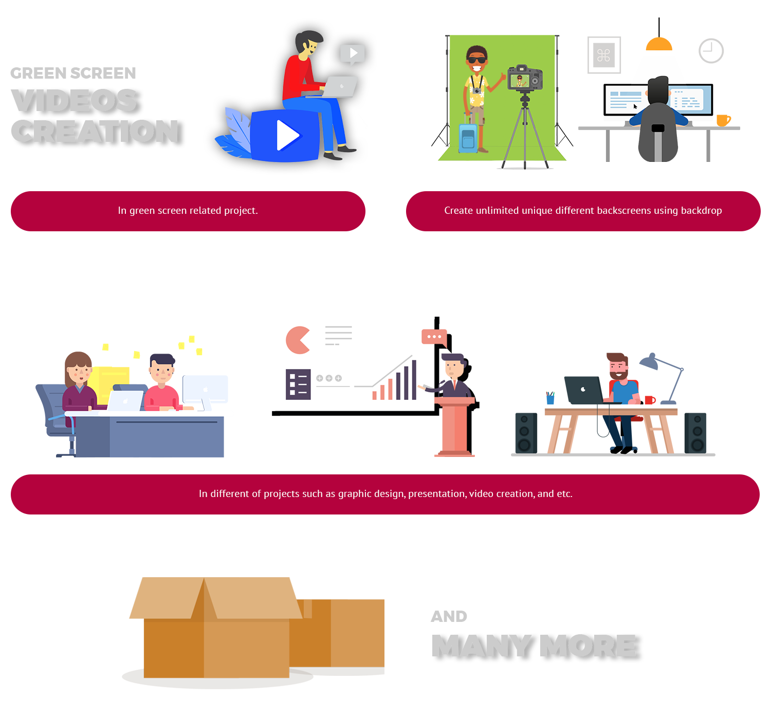Get a collection of ready-to-use high quality animated virtual studio sets, static green screen version, PowerPoint virtual studio builder, green screen actors and motion video backgrounds, and more for the price of less than 1 set.