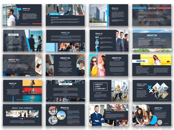 Each template comes in a modern style and is professionally designed. Simply fill in the details of your presentation and you're ready to go. Plus, because these templates are ready to use, there is no need to hire a designer again - saving you time and money.
